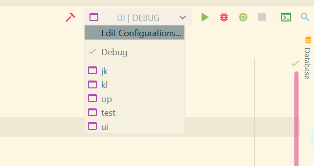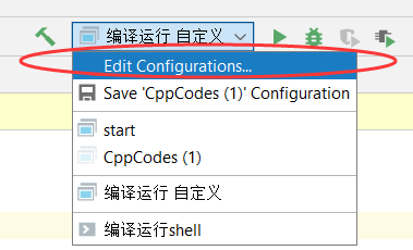 点击右上方绿色三角左边的方框,下拉的Edit Configurations