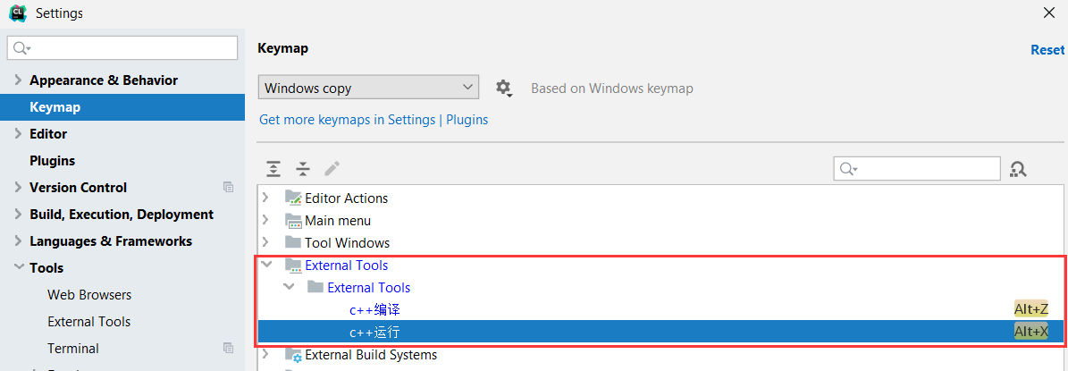 首先从setting里找到External Tools,点红圈的+号,如果你之前没有添加过快捷键,这里应该是空的,我已经添加好了。