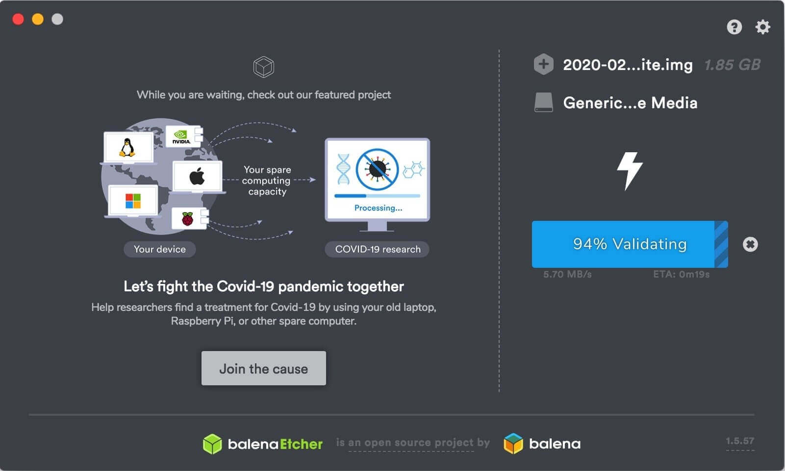 打开balenaEtcher,选定镜像文件,点击Flash。