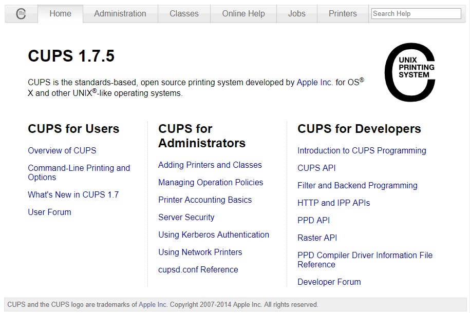 sudo cupsctl --remote-any这时候,在局域网内任何一台电脑或手机的浏览器中,访问树莓派的 631 端口,如:http://192.168.1.XX:631,就可以进入基于网页的 CUPS 配置界面。